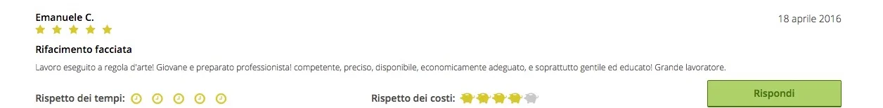 Recensione per lavori di ristrutturazione delle facciate di un condominio a Verona. (fonte: www.prontopro.it)